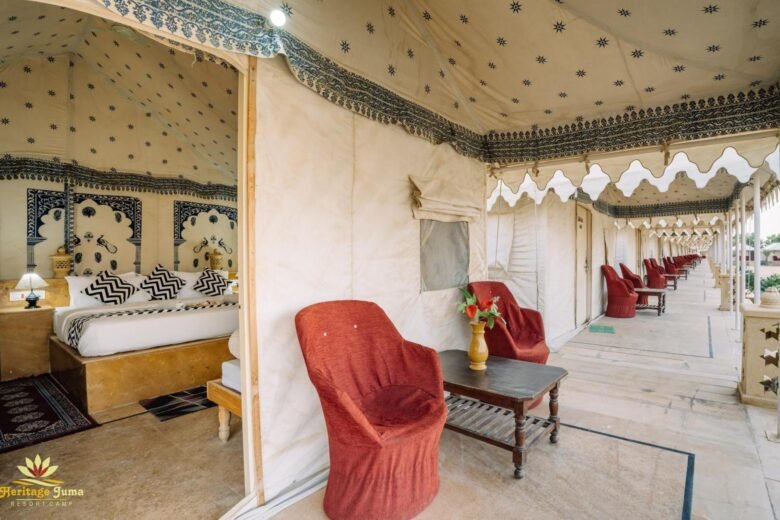 Evenings come alive with cultural performances, folk music, and dance around the bonfire. Camel rides, jeep safaris, and sunset views over the dunes add to the adventure. Guests can also enjoy Rajasthani cuisine, served fresh in open-air settings. With 24/7 service and warm hospitality, Jaisalmer desert camps promise a unique and unforgettable experience under the starlit sky.